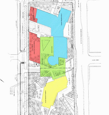 The drawing above is the most current site plan for the Block. Retail areas are shown in RED.